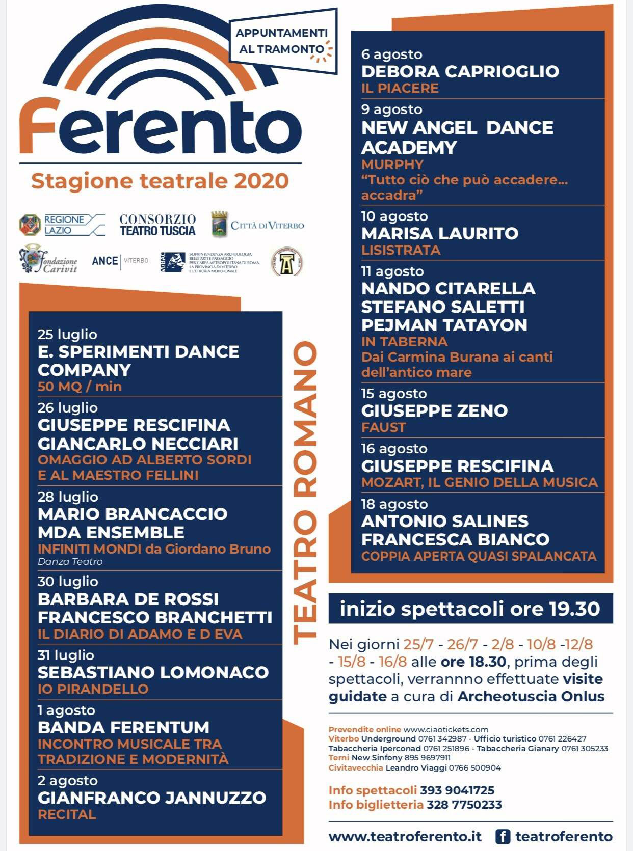 Un weekend particolare quello di Ferragosto, tra “Faust” (sabato 15 agosto) e “Mozart” (domenica 16 agosto), entrambi con inizio alle ore 19,30. Prosegue la stagione estiva nell’antico teatro romano di Ferento (solo cavea con distanziamento nel rispetto delle norme anti Covid 19), organizzata dal Consorzio Teatro Tuscia, assegnatario del bando del Comune di Viterbo, con il sostegno della Fondazione Carivit, di Ance Viterbo e con la direzione artistica di Patrizia Natale, in collaborazione con Archeotuscia onlus e TusciaE20.