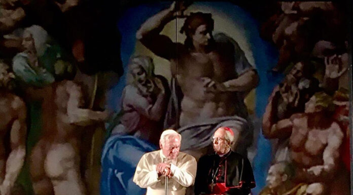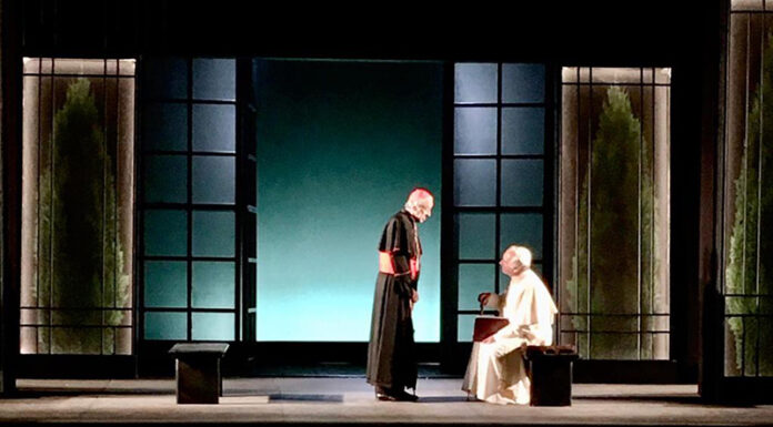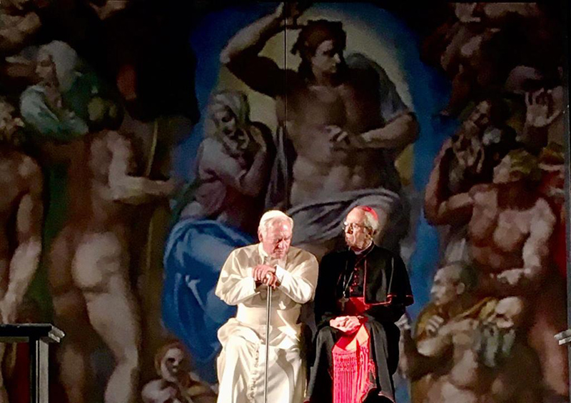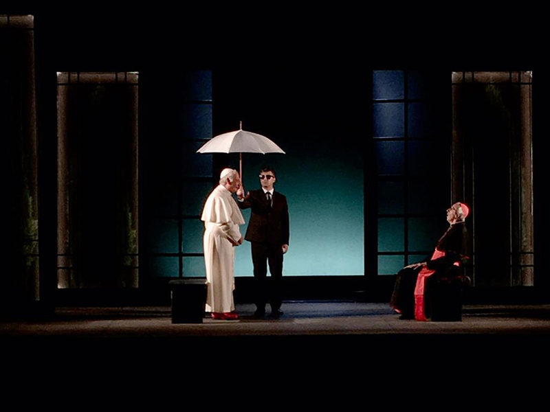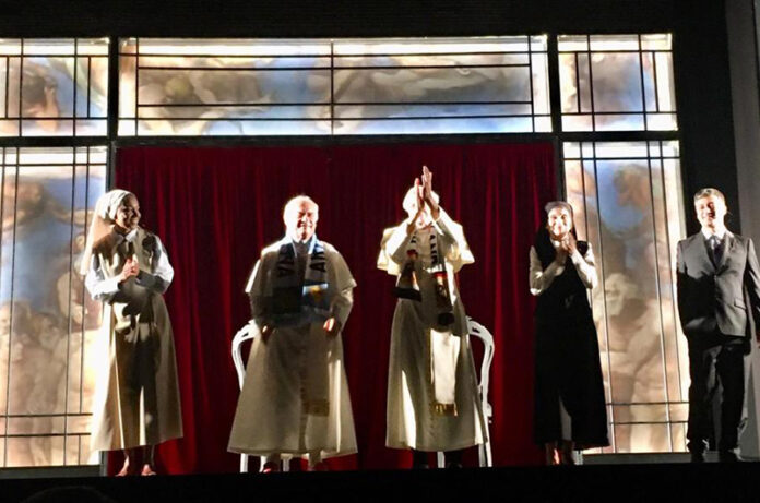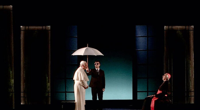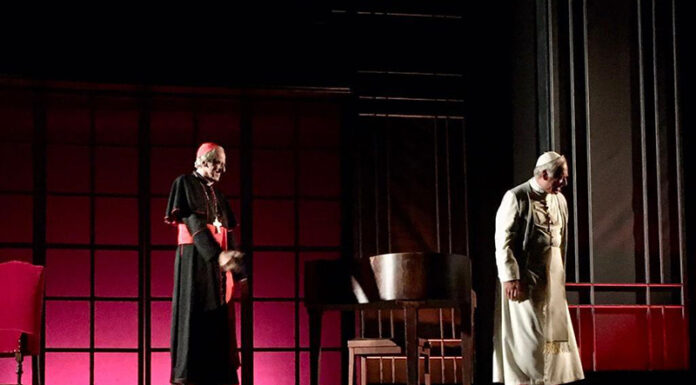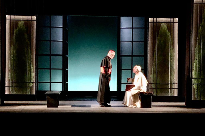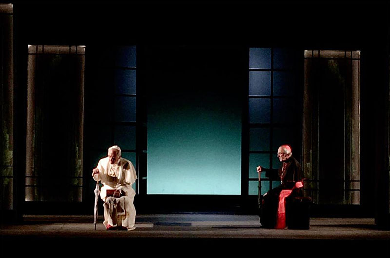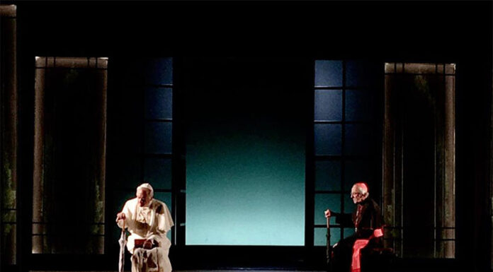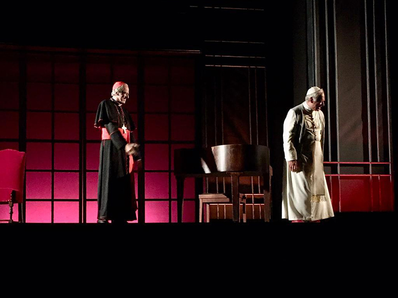 “Questo incontro e il dialogo fra Ratzinger e Bergoglio – che sia veramente avvenuto o meno non importa –ha dichiarato il regista Nicoletti, ci riguarda tutti, in quanto uomini.- Ed è  la predisposizione giusta con la quale affrontare questo impegnativo allestimento”. L’atteggiamento con cui il pubblico di Ferento ha seguito le quasi due ore di uno  spettacolo che ha parlato di due uomini e, allo stesso tempo,  di tutti gli uomini. Parlando del potere, di come a volte sia difficile se non impossibile per un solo uomo sostenere il fardello delle responsabilità, ponendo l’interrogativo di quanto, veramente, sia giusto o meno perseverare o se non valga la pena, a volte, scendere dalla propria croce. E Joseph Ratzinger  decide  di seguire la propria coscienza. Il resto è  affidato alla storia pura dei nostri giorni.