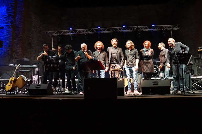 La cavea del Teatro Romano di Ferento gremita fino alle ultime file, una luminosa serata estiva, ha fatto da da cornice mercoledi sera all’esibizione degli “Hotel Supramonte”con un favoloso omaggio a De André a vent’anni dalla sua morte.