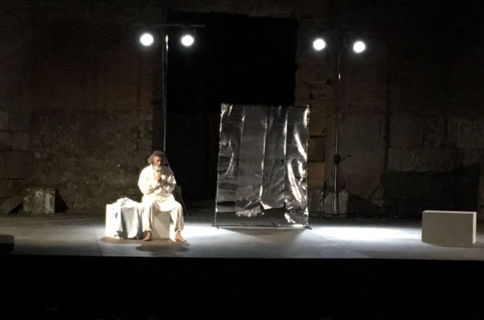 Metti una sera a goderti  nel magnifico teatro di Ferento lo spettacolo  Uno, nessuno e centomila ,uno dei romanzi più famosi di Luigi Pirandello evocazione di un  Vitangelo Moscarda, che può essere considerato come uno dei personaggi più complessi del mondo pirandelliano, e sicuramente quello con maggior auto consapevolezza, un uomo di oggi,che  vaga nelle difficoltà della quotidianità, alla ricerca di conferme esterne, sino alla conquista della consapevolezza del proprio Sé che è l’unico vero traguardo dell’esistenza. Personaggio  interpretato in modo elevato dall’attore Enrico Lo Verso, che dopo quasi 10 anni di assenza, è tornato in teatro in occasione del 150esimo anniversario della nascita di Luigi Pirandello, per la messa in scena di uno dei testi più classici della letteratura italiana contemporanea. Un bell’esempio di rappresentazione e duole  constatare  che il Teatro di Ferento  assorba sempre meno pubblico, forse l’abbondare di spettacoli variegati in estate in tutta la provincia allontana sempre più da un tipo di spettacolo impegnato e costruttivo, la tradizione di Ferento antica di duemila anni  deve essere sostenuta con la presenza in teatro, considerando  la insufficienza di risorse che l’ente gestore con grande impegno affronta tenendo in piedi un cartellone di tutto rispetto. E come nello spettacolo pirandelliano il finale positivo, porta alla scoperta della possibilità concessa ad ognuno di trovare se stesso, dentro la propria bellezza., tutti a Ferento per ritrovare il teatro autentico, prossimo appuntamento il mertedì 25 luglio con Caligola.