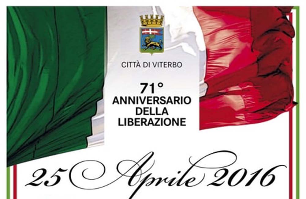 A Viterbo , le celebrazioni per il 71° anniversario della Liberazione avranno inizio alle ore 9,30 con la deposizione della corona d’alloro alla lapide della M.O.V.M. Capitano Paolo Braccini alla Scuola Sottufficiali dell’Esercito.