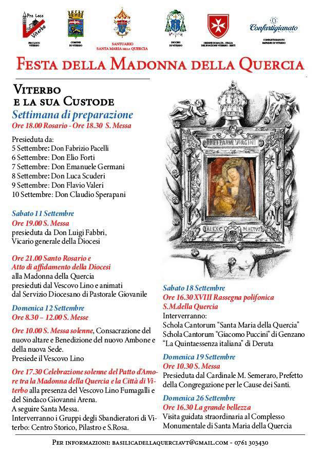 Hanno illustrato gli eventi Don Massimiliano Balsi, rettore del Santuario Santa Maria della Quercia e Irene Temperini, presidente Pro Loco Viterbo e responsabile eventi culturale del Santuario.