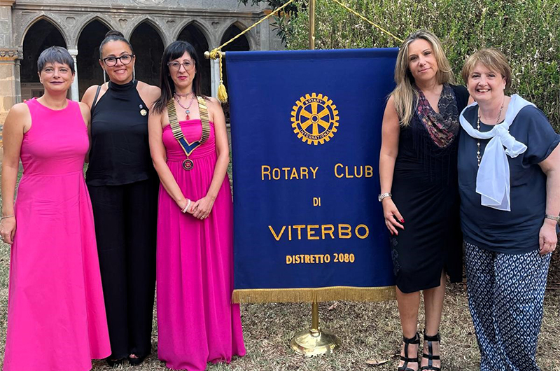 Festa d’estate”, parte alla grande l’attività sul territorio coordinata dalla neopresidente del Rotary Club Viterbo, l’avvocato Rosita Ponticiello. Nella cornice suggestiva del chiostro di Santa Maria in Gradi, presso il Rettorato dell’Università degli studi della Tuscia di Viterbo, si è svolta ieri la Festa d’estate, organizzata dal Rotary Viterbo in collaborazione con WeUnitus Alumni Association l’associazione l’Associazione Alumni dell’Università degli Studi della Tuscia, rappresentata dalla professoressa Gilda Nicolai, delegata del Rettore per Alumni e Presidente dell’Associzione. Hanno patrocinato l’evento e partecipato alla serata: Inner Wheel di Viterbo con la presidente Maria Teresa Lecchini; l’Ordine di Malta delegazione di Viterbo e Rieti con il Cavaliere di Grazia Magistrale Roberto Piergentili in vece del delegato Roberto Saccarello; il Panathlon international club di Viterbo con il presidente Giancarlo Bandini; il Lions international di Viterbo con il presidente Paolo Cannone; la Fidapa di Viterbo con la past president Miranda Bocci delegata dall’attuale presidente Giuliana Ceso e il Soroptimist international club di Viterbo con la presidente Gilda Nicolai.