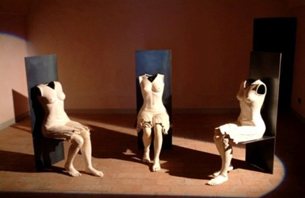FI.ORI di TONINA CECCHETTI scultrice realizza alle sue opere solenni, da nomi frutto di ironici giochi linguistici Nelle sculture di Tonina Cecchetti importante e’ il titolo perche’ e’ sempre una frase assai significante ma, al contempo, spiazzante: infatti all’apparente leggerezza di quello corrisponde un’immagine inquietante, a volte drammatica. E’ in gioco la corrispondenza tra linguaggio e realta’, tra nome e cosa (o persona) indicata dal nome, tema che ha coinvolto l’uomo fin dalle origini del suo pensare.La mostra a cura di Giorgio Bonomi presso lo spazio espositivo di Palazzo Chigi