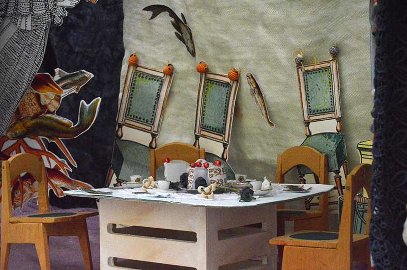 La mostra è un esercizio immaginativo e narrativo, tra arte e artigianato, per ricostruire un palcoscenico in miniatura, con giochi di scena, oggetti evocativi, boccascena tridimensionali, arredi, quinte e personaggi/marionette di carta fisse e mobili. Una ricerca che recupera la tradizione e l’iconografia del teatro in miniatura e che affonda nell’interazione tra libri e lettura, cartotecnica e giocattoli di carta, gioco e apprendimento. Mettere in scena la letteratura per l’infanzia classica e contemporanea con quest’arte è un’occasione per rinnovarla attraverso tutte le suggestioni del meraviglioso e sorprendente mondo del teatro. Il “vero” teatro si fa sempre per gioco ma sul serio, con la serietà dei bambini quando giocano.