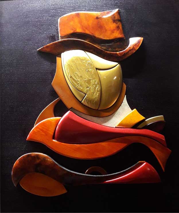 In questo 2020, in occasione del centenario della nascita di Fellini, ho pensato di fare un omaggio al padre dei visionari. L’idea è quella di farne una mostra… vediamo. Per il momento c’è questo mio personale ritratto del maestro. Legno policromo e pietra cm 55 x 65.Chi si fa avanti? Ci sono ancora tre mesi di tempo…..