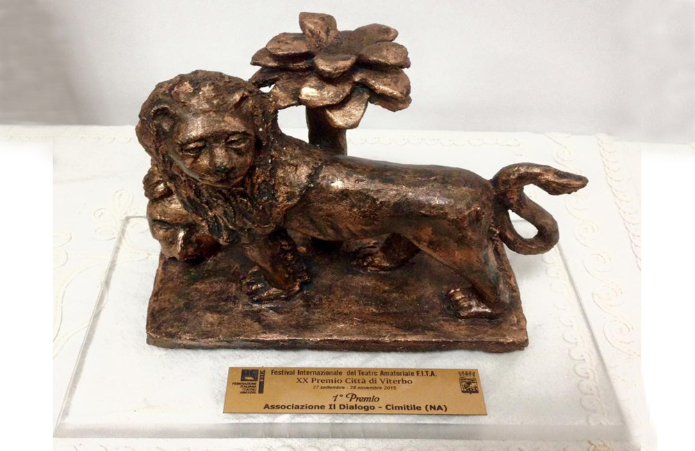 Si erano esibiti sul palcoscenico del San Leonardo il 25 ottobre scorso con la commedia “Non ti pago” del grande Eduardo, e nel giorno in cui l’erede di Eduardo, suo figlio Luca, una vita in palcoscenico, se ne è precocemente andato, sabato 28 novembre sul palco del Teatro san Leonardo la Compagnia napoletana Il Dialogo di Cimitile Napoli si è aggiudicata il XX premio Città di Viterbo del Festival Internazionale del Teatro Amatoriale a cui si è pure aggiunto il premio quale “Miglior gradimento del pubblico” e 4 nominations:migliore attore non protagonista: Peppe Miccio, miglior attrice non protagonista Rosaria Vecchiarelli , migliore attore protagonista: Salvatore Maccaro ;migliore scenografia Carmine Ciccone .