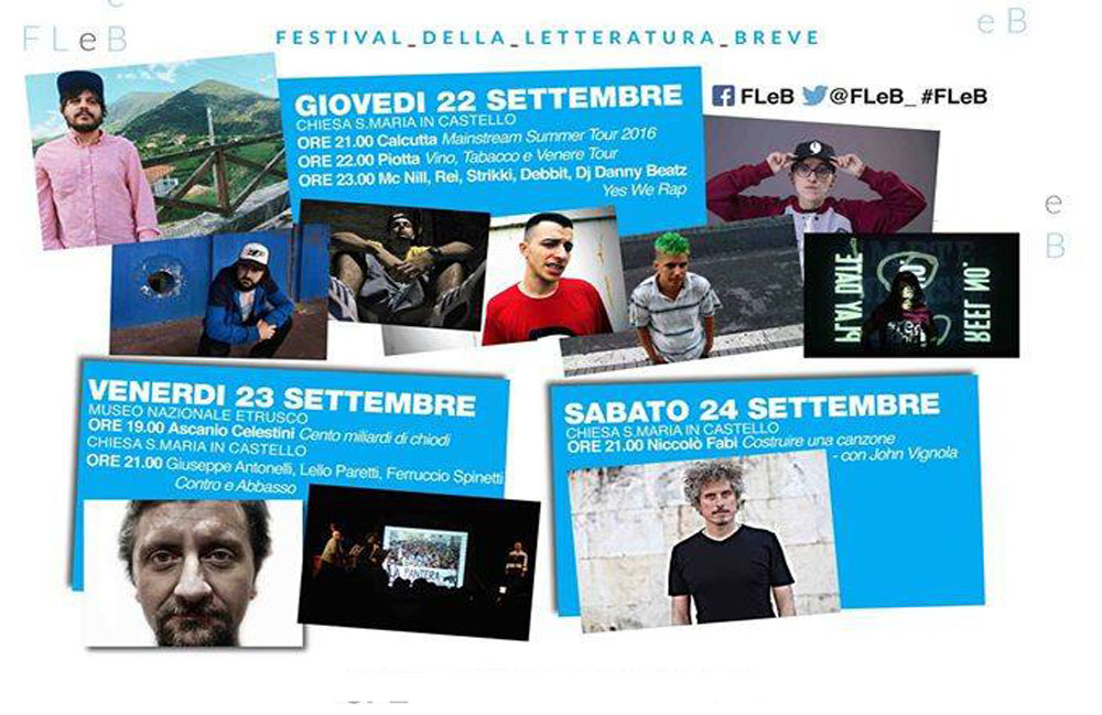settembre la seconda edizione di FLeB, il festival della letteratura breve che quest’anno approda a Tarquinia. Il FLeb dal 22 al 25 settembre in varie sedi cittadine, si interroga su questa rivoluzione globale, sul suo effetto sul modo di comunicare e di esprimersi, sull’erosione delle differenze tra