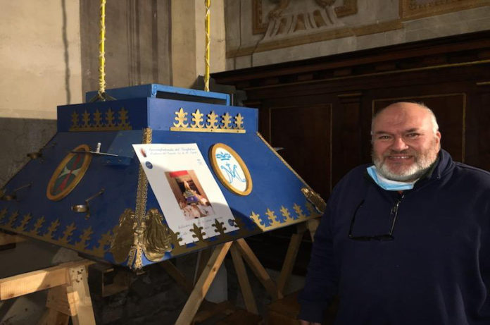 Pesare cento chili e avere un fisico da rugbista a Franco Chiaravalli gli è valso il nomignolo di “Quintaletto” non poteva andare diversamente, ed è con questo nomignolo che la maggior parte dei viterbesi lo conosce. Ex facchino della Macchina di Santa Rosa, dove ha ricoperto tutti i ruoli con ben ventotto trasporti. Ha iniziato con l’indimenticabile “Volo d’Angeli” di Giuseppe Zucchi fino ad arrivare ad “Ali di luce” di Raffaele Ascenzi, due macchine legate da un sottile filo di continuità. E’ proprio con Giuseppe Zucchi che inizia un percorso durato tanti anni, ricordando il suo esordio, del tutto casuale. Dopo aver accompagnato alcuni amici a sostenere la prova per superare l’idoneità allo sforzo fisico si sottopone anche lui alla prova, più per emulazione che convinzione, riesce a superarla anche con una leggero sbandamento che prontamente recupera. Mentre i facchini anziani lo aiutano a liberarsi del peso sente una voce che non ammette repliche “Domani vatti a fare il vestito…” Era cosi entrato a far parte dei Facchini di Santa Rosa e il “vestito” come lo aveva chiamato Giuseppe Zucchi è la tradizionale divisa dei Facchini di Santa Rosa, bianca con fascia rossa alla vita. Ricordi che snocciola nella sua nuova veste di Priore Arciconfraternita del Gonfalone, Araldi della Madonna del Carmelo, ricostituita Don Mario Brizi, parroco della Chiesa di santa Maria Nuova. E’ passato tanto tempo e alla devozione della Santa patrona di Viterbo ha unito quello della Madonna del Carmelo che ogni sedici di luglio viene portata a spalla vie del quartiere, facendo rivivere la storia della Arciconfraternita lunga più di settecento anni.