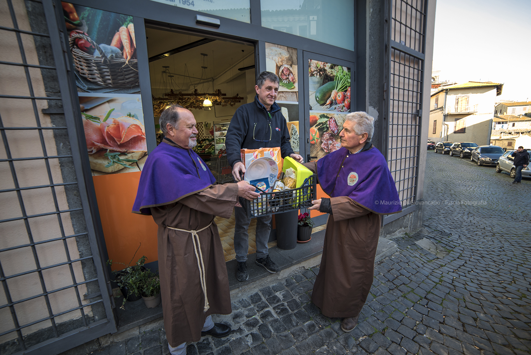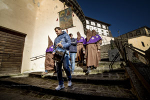 Anche quest’anno la mattina del giovedì grasso i Confratelli, vestiti con il tradizionale saio marrone mantellina viola e cappuccio in testa e tamburino al seguito hanno girato il paese bussando alle porte degli abitanti del borgo di Gradoli che ha risposto con offerte in denaro o prodotti alimentari.