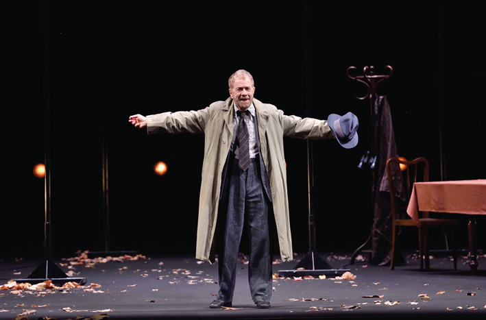 Lavia gioca con l’ironia, il pubblico, gli aneddoti e un’atmosfera che ci riporta agli anni quando si beveva Pastis, Pernod e si fumavano le Gauloises papier maïs. Il regista racconta anche il teatro che è poesia e si auto-dirige scherzosamente, come un maestro che ormai, grazie alla sua esperienza, può permettersi di scherzare. Ma nonostante ciò non rinuncia a spiegare le parole, la lingua, la filologia che viene da lontano e lo fa con amabilità.