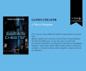 nuova avvincente storia dal titolo “Games Cheater” (La Caravella editrice). Un breve romanzo denso di emozioni nella quale il reale della vita quotidiana si intreccia con il surreale dei videogiochi, dove un uomo deve affrontare le conseguenze delle sue azioni alla ricerca del senso della vita.