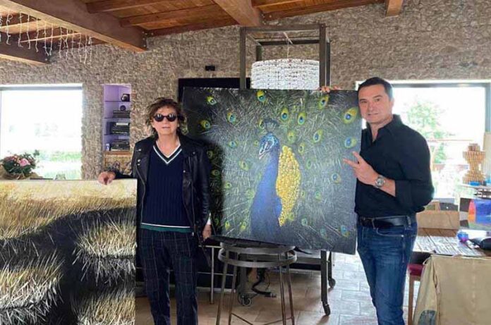 Gino Bernardini è l’artista dei paesaggi, della natura, dei toni di colori che riportano a essa nella armonia che contraddistingue il suo nascere un’altra volta, il suo laboratorio studio è a Tuscania, in via Torre di Lavello 14. Qui lo vediamo in un momento “magico” lo scorso fine settimana  alla Piantata di Arlena di Castro dove ha incontrato la cantante Gianna Nannini una affezionata della Casa sull’Albero, a cui ha presentato alcune sue opere in mostra momentanea nella struttura, facendole omaggio di una. La dedica? E’ scritta nel testo della canzone di Gianna “Meravigliosa Creatura”,  un’ode alla bellezza, quella bellezza con cui  Bernardini comunica la sua arte, condivisa anche con la Pop rock  più amata dagli italiani. L’artista Bernardini sarà presente alla Fiera d’Arte di Padova dal 10 al 15 novembre prossimo(L.P.)