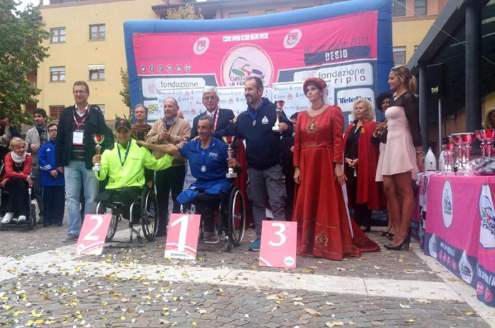 Il Giro d’Italia di handbike domenica 1 ottobre è stato protagonista indiscusso della città di Desio. Settantaquattro handbikers si sono dati battaglia per aggiudicarsi la maglia rosa attraversando con i loro bolidi a tre ruote le vie del centro. Alle 10.30 alla presenza del Sindaco Roberto Corti e del Presidente del Giro d’Italia di handbike Walter Ferrari è partita ufficialmente la penultima tappa del Giro. Il tracciato, un anello di cinque chilometri, era caratterizzato da una leggera salita di circa due chilometri al termine della quale era posto l’arrivo. Formula di gara classica: un’ora più un giro. Dieci le categorie partecipanti, divise in base alla disabilità . La gara è stata vinta dall’atleta del team Giletti, Cristian Giagnoni categoria MH4