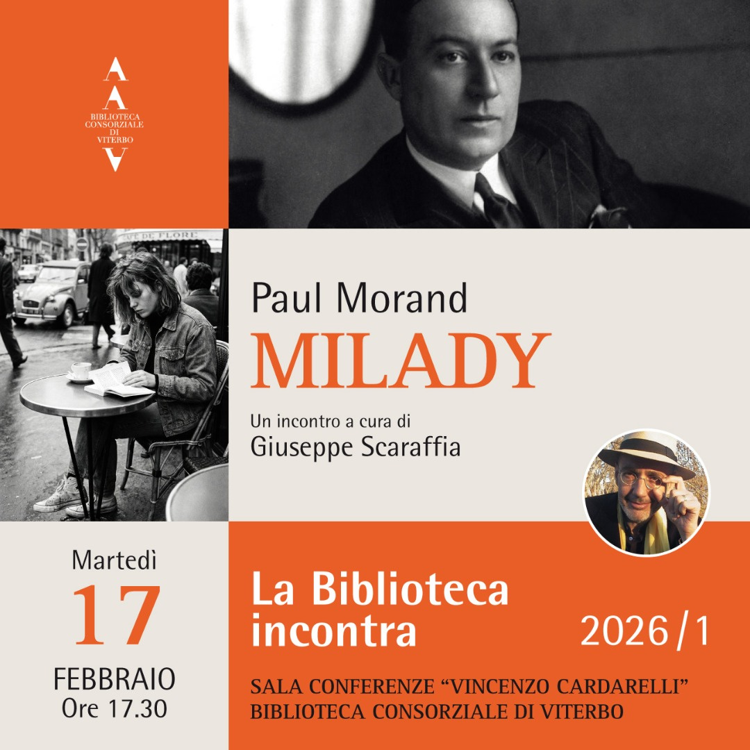 Martedì 17 febbraio, alle 17.30, per il nuovo appuntamento della rassegna “La Biblioteca incontra” – stagione 1/2026, Giuseppe Scaraffia ricorderà lo scrittore francese Paul Morand presentando il libro Milady (Settecolori).