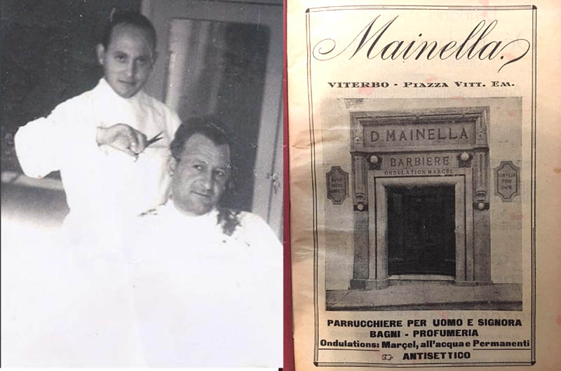 Mainella ha condotto personalmente il Salone fino ai primi anni Sessanta per poi cederlo a due dei suoi dipendenti. Il ragazzo di bottega di allora Mario Del Pinco (vi entrò giovanissimo ad otto anni) mi dice che Dante aveva compilato la bozza di un manuale sull’arte del taglio dei capelli, corredato di disegni originali, che però non ebbe mai modo di pubblicare. Ricordo che il fratello Duilio Mainella, repubblicano di ferro, riconoscibile per la sua pennazza bianca, era dotato di una prorompente verbosità intrisa di bonaria saggezza. Era un uomo pubblico e si divideva tra lo scranno di palazzo dei Priori, dove è stato anche assessore, e il suo lavoro di marmista. Dal coiffeur Dante Mainella si recavano gli uomini della Viterbo bene che frequentavano il Salone specialmente il sabato mattina. La domenica era invece appannaggio dei contadini che scendevano in città giacca e cravatta per la settimanale rasatura. Facevano prima quattro chiacchiere a piazza delle Erbe con i sensali per vendere o acquistare una vacca, un casale o una partita di fieno. Poi affrontavano il rito del “barba e capelli” che li rimetteva a nuovo. Barberia “in” era anche quella di via Matteotti dal nome altisonante “Salone azzurro” di Peppe Buratti. Vi ha lavorato una schiera di giovani, tra cui Pasqualino, oggi in proprio a via San Luca. Tra i suoi clienti più fedeli si fa notare l’ex sindaco di Viterbo Leonardo Michelini. Lavorante di Buratti anche lo stesso Del Pinco prima di aprire il suo Salone a via Vicenza.