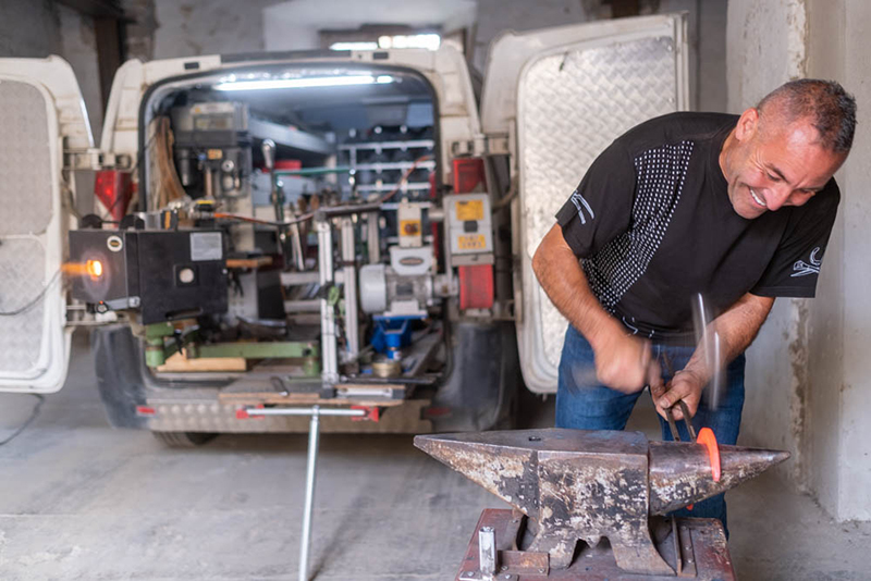 Sante Ciancaleoni è l’ultimo maniscalco di Monte Romano, la narrazione di se ci porta alla nobile arte della “Mascalcia” ovvero l’arte di ferrare i cavalli. Oggi i tempi sono cambiati, il suo furgone super attrezzato diviene una piccola officina che gli permette di spostarsi direttamente nelle aziende dove necessita la sua opera. La maremma Laziale e Toscana si sa che per per vocazione è una terra di butteri, e non può far a meno della manualità di Sante .Quello che colpisce di questo artigiano verace oltre la sua bravura, è l’amore per il proprio lavoro, sicuramente strettamente collegato all’amore per il cavallo. Mentre parla è un fiume in piena, e intanto i colpi del martello sull’incudine danno forma al “ferro di cavallo” rosso incandescente, si perché Sante Ciancaleoni è al tempo stesso fabbro e maniscalco due arti che sono un unicum da secoli. Sotto l’ausilio del veterinario riesce a correggere i difetti nel passo del cavallo. Dopo ventisei anni, come gli piace ricordare sta ancora “sul pezzo” incuriosendo tanti giovani si appassionano al suo mestiere Intanto il ferro di cavallo completato nella fase di conversazione sugella un rapporto di amicizia e di fortuna. Anche la fortuna ha un principio. La tradizione del ferro di cavallo nasce da una leggenda inglese, quella di Saint Dunstan. Esperto fabbro, questi si trovò ad avere a che fare con il diavolo, che gli chiese di ferrare il proprio cavallo. Dunstan, con molto coraggio, invece, gli ferrò il suo di zoccolo (tutti i diavoli hanno gli zoccoli). Il diavolo rimase imprigionato. Quando, alla fine, il fabbro lo liberò, fu costretto a promettere di non entrare più in una casa protetta da un ferro di cavallo. Per inciso, il fabbro divenne l’arcivescovo di Canterbury. Più fortuna di così!
