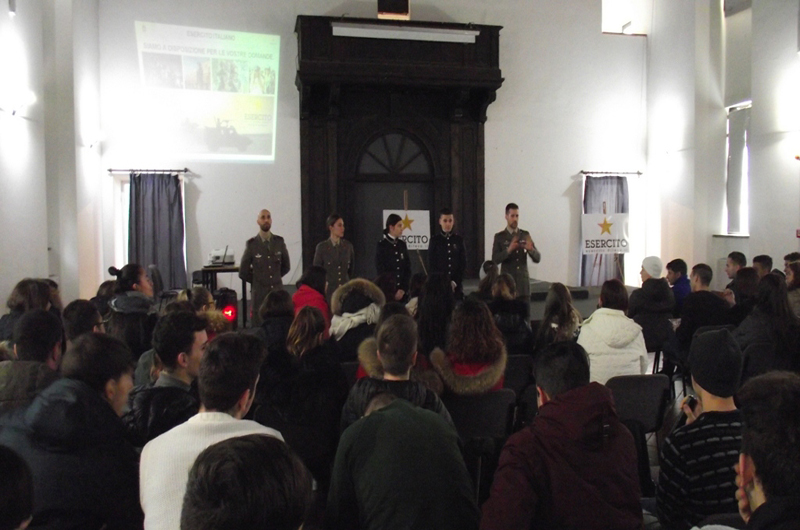 Nel corso della conferenza, sono state illustrate le varie opportunità professionali dell’Esercito Italiano e gli sbocchi di carriera (Ufficiali, Sottufficiali, Graduati, Volontari in Ferma Prefissata), con particolare riferimento all’Accademia Militare di Modena nonché agli arruolamenti in qualità di Volontari in Ferma Prefissata di un anno (VFP1), i cui bandi sono stati recentemente pubblicati. Il contributo del personale militare debitamente formato dell’Esercito è stato notevolmente apprezzato con un bilancio, tenuto conto dell’interesse dimostrato dagli studenti e del numero di contatti, estremamente positivo.