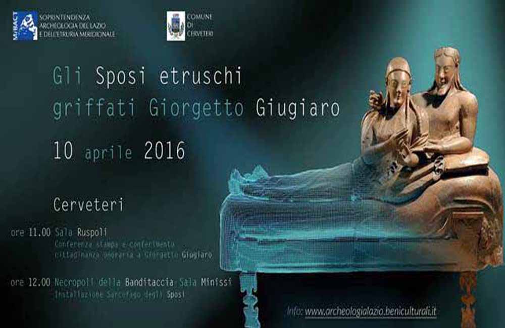 Da domenica 10 aprile 2016 il famosissimo Sarcofago degli Sposi torna a Cerveteri, a quasi centocinquanta anni dalla sua scoperta nella necropoli della Banditaccia. Non si tratta dell’originale conservato a Roma nel Museo Nazionale Etrusco di Villa Giulia e ormai strettamente correlato alla storia di quel museo, ma di una riproduzione fedele griffata Giorgetto Giugiaro.