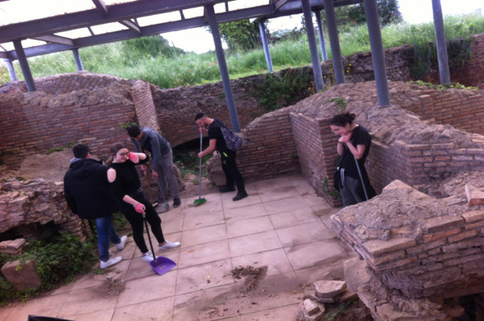 tepidarium all’interno delle terme. E’ stata asportata la vegetazione infestante e un gruppo di ragazzi ha fatto la ricognizione fotografica archeologica, prima, durante, dopo l’indagine.