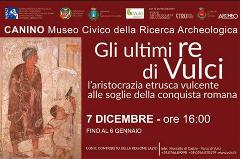 Sabato 7 dicembre alle 16, al museo civico della ricerca archeologica di Canino, sarà inaugurata al pubblico la mostra “Gli ultimi re di Vulci. L’aristocrazia etrusca vulcente alle soglie della conquista romana”.