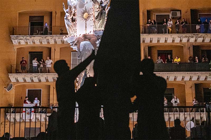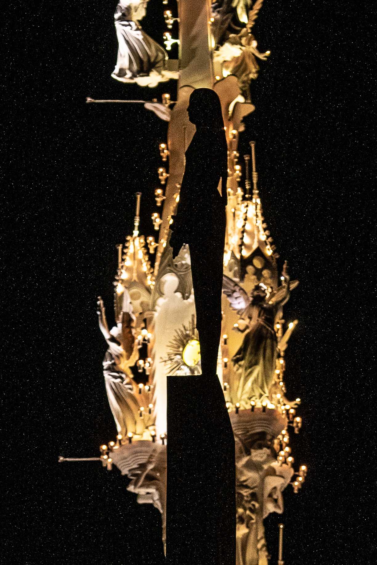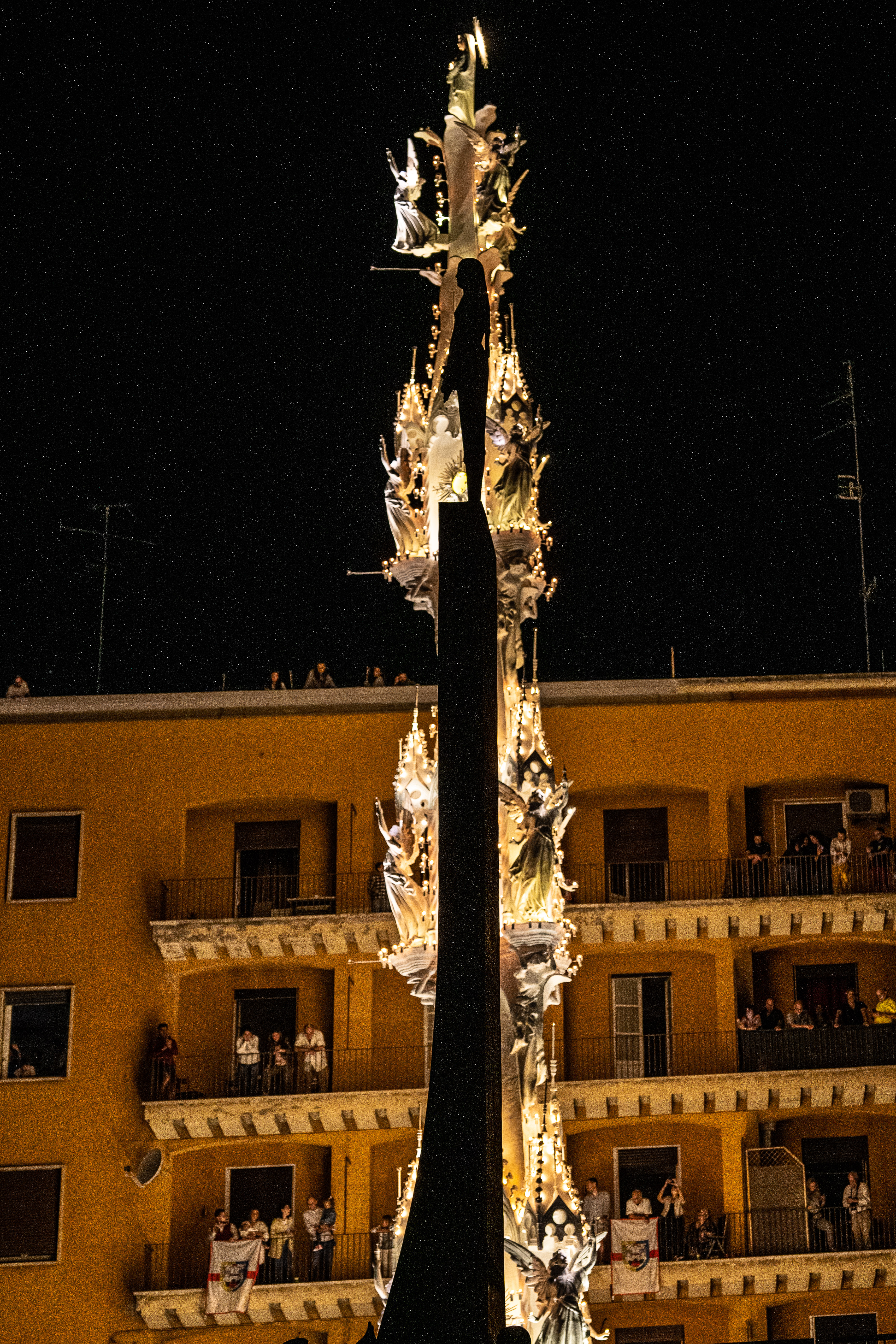 Monumento ai Facchini di piazza della Repubblica sovrapposto alla Macchina di Santa Rosa in passaggio a via Marconi.