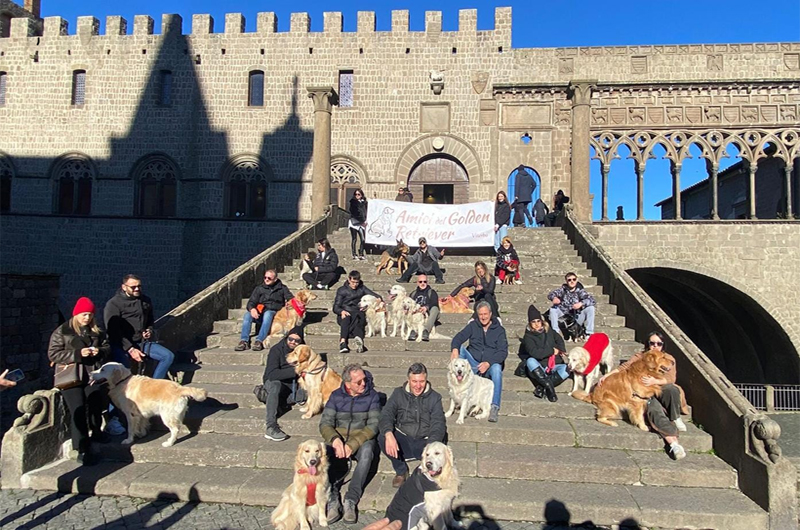 Golden retriever riuniti a Viterbo per una passeggiata nel centro storico