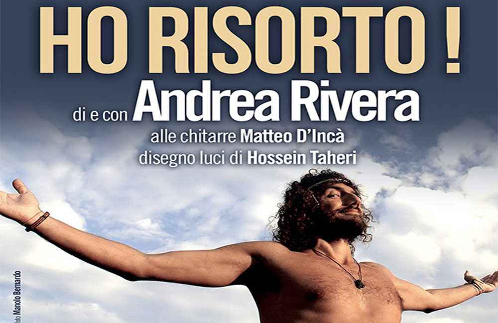 HO RISORTO ! Anteprima nazionale Teatro Rivellino il 13 dicembre alle ore 21,00 Teatro, canto, video, improvvisazione, satira, e un altro grande protagonista: il pubblico partecipante. Rivera imbraccerà una chitarra e darà voce ai suoi testi da moderno cantastorie e stornellatore, affiancato dal musicista Matteo D’Incà (chitarra elettrica, acustica e mandolino), in un particolarissimo esempio di teatro canzone-video in evoluzione continua. Un ritmo serrato fra giochi di parole esilaranti e l’arte di una satira completamente improvvisata, che esprime al massimo la creatività, l’energia propositiva e la sua capacità di coinvolgere, in un turbinio di denunce al limite dell’ invettiva. Ho Risorto! è uno spettacolo che descrive e deride i meccanismi di manipolazione, le verità preconfezionate dai media e dalla politica. Un lavoro che decostruisce la mente del pubblico, stupisce, attrae ed indispone perché interpreta le pulsioni sociali, investigando su temi attuali, dal razzismo dilagante e l’intolleranza che vivono le periferie, all’ amore. Un atto di denuncia che si interroga sulle vicende più controverse della cronaca italiana.“Do più rilievo all’ improvvisazione ed alla satira al limite della pazzia mia e del pubblico, della seppur importante lezione del così detto teatro civile. Voglio proporre uno spettacolo che cambi ogni sera, per non timbrare il cartellino come quando lavoravo in fabbrica, voglio innescare una catena di smontaggio del pensiero del pubblico. Non voglio insegnare. Sono attratto dalla ricerca dei processi creativi sia artistici che sociali, che incitano alla rivoluzione quotidiana del sistema costituito.”