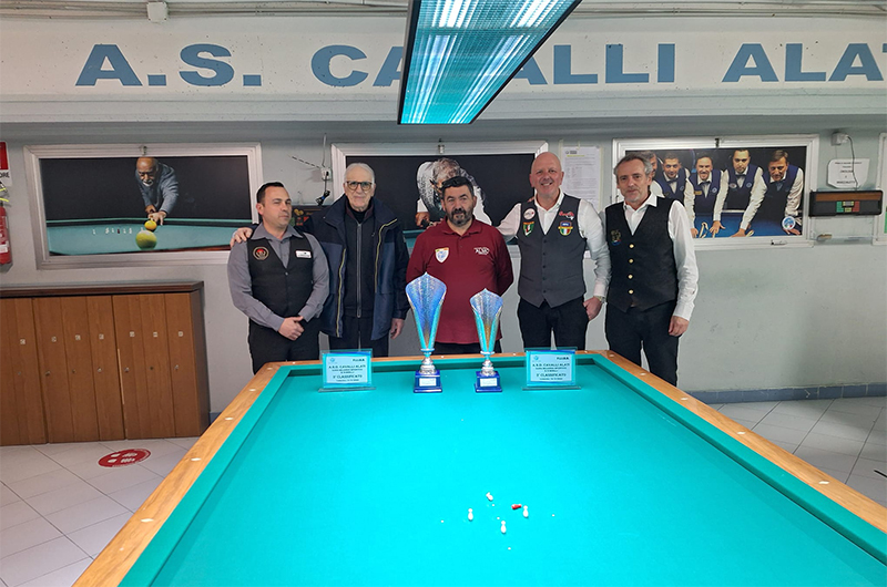 Ben 80 atleti provenienti da tutto il Lazio hanno partecipato alla gara libera regionale di Biliardo, tra cui i Cavalli Alati di Tarquinia. Sul podio al 1° posto l’atleta locale Roberto Sileoni; 2° posto per il romano Camillo Perrone. I Cavalli Alati hanno ottenuto un ottimo risultato piazzando, oltre al vincitore altri 4 esponenti nei primi 10 posti. Stefano Vinci si è classificato terzo, Ferruccio Salsa quinto e al nono posto Alessio Nicolini e Adriano Micarelli. Il presidente dell’associazione Cavalli Alati, Salvatore Flumini, esprime grande soddisfazione per i risultati raggiunti: “Il livello della nostra associazione sportiva di biliardo cresce sempre più – riferisce il presidente Flumini – in questo ultimo torneo svoltosi presso la nostra sede in via dello stadio, si sono cimentati atleti regionali e non di ottimo livello. Complimenti al nostro atleta Roberto Sileoni e con lui agli altri nostri associati che hanno dimostrato di avere altrettanto valore e non solo nel gioco. Sono infatti contento nel vedere come l’armonia di gruppo stia prevalendo e come di fatto porti poi agli ottimi risultati nel campionato a squadre regionale che li vede tra i primi. Il mio auspicio è che si continui questo percorso sereno che sta dispensando gli atleti e dirigenti di grosse soddisfazioni”. Ecco la classifica dei primi 10: 1 Sileoni Roberto Tarquinia, 2 Camillo Perrone Roma, 3 pari merito Stefano Vinci Tarquinia e Cristiano Conti Roma 5-8 Ferruccio Salsa Tarquinia, Edmondo Burchi Civitavecchia, Andrea Lopetuso Viterbo, Federico Bordino Viterbo, 9-10 Alessio Nicolini e Adriano Micarelli Tarquinia.