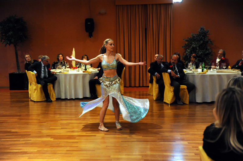 Tornando alla serata, una serie di esibizioni di ballo ha incantato i presenti. Applaudita a scena aperta la maestra di ballo Elisa Anzellotti per un focoso Flamenco ed una sensuale Danza del Ventre. Il Maestro Antimo Puca con Elisa Lucconi hanno danzato alla perfezione un Tango Argentino, meravigliosa specialità di danza italiana importata in Argentina e colà affermata nel mondo.