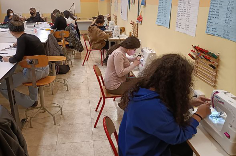 Le ragazze sono diventate esperte di asole, orli, rifiniture con passamanerie. Un lavoro che ha arricchito e abbellito con nuove idee e creatività i disegni di base.