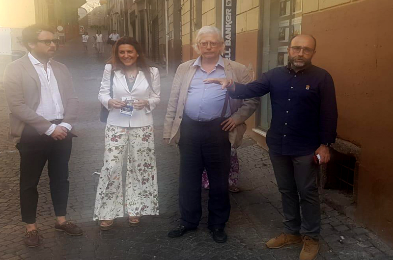 Alla inaugurazione della “Strada del Cinema” erano presenti i neo assessori Marco De Carolis  e Alessia Mancini titolari del Turismo e dello Sviluppo Economico gli assessorati che   hanno promosso il progetto Viterbo nel Cinema. Sono sette i panneli disposti lungo quella che per definizione sarà per Viterbo  la Strada del Cinema.