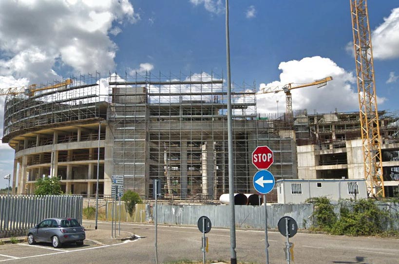 Il “Colosseo”, così lo chiamano a Viterbo, avrebbe dovuto essere un grande centro commerciale e direzionale. Probabilmente tra i più imponenti di tutto il centro Italia. Migliaia di tonnellate di cemento armato al quartiere Riello a Viterbo. I lavori si sono fermati nel 2011.Il 18 dicembre prossimo si conoscerà forse il destino del mega complesso edilizio. Forse, ma non è detto. Comunque per quella data è fissata alle ore 10.00 presso il tribunale di Viterbo, Giudice Antonino Geraci, la vendita all’asta della struttura, iniziata dalla società Polo Nord nel 2007 e sospesa nel 2011 per problemi di varia natura. Un’asta al ribasso rispetto a quelle già andate deserte (almeno un paio, partendo da circa 50 milioni di euro ) e per la quale il Tribunale di Viterbo ha fissato una base minima di 13.200.000.000 euro. Per partecipare all’acquisto servono  9.900.000 euro. Nel bando di gara vengono ricordati i dati dell’immobile: accesso via Falcone e Borsellino terreno di Ha 3.03.53 catastali…fanno parte del compendio aree già adibite a sedi stradali e parcheggi….il fabbricato si sviluppa su undici piani complessivamente di cui tre interrati…Il bando, ovviamente, riporta in dettaglio la configurazione dell’immobile con tutte le aree annesse. Sono trascorsi dodici anni da quando fu posta la prima pietra a questa struttura che avrebbe dovuto ospitare un centro commerciale, una palestra, un resort, una piscina. Evidentemente non se ne è fatto nulla se il cantiere fu chiuso quattro anni dopo e tale resta ad oggi, a far mostra di sé – si fa per dire – a pochi metri dallo svincolo stradale tra Tuscanese e Cassia Nord e a due passi dal tribunale. C’è chi è pronto a scommettere che resterà una delle cattedrali nel deserto che punteggiano Viterbo, e c’è chi sostiene che la prossima asta giudiziaria determinerà finalmente una soluzione.