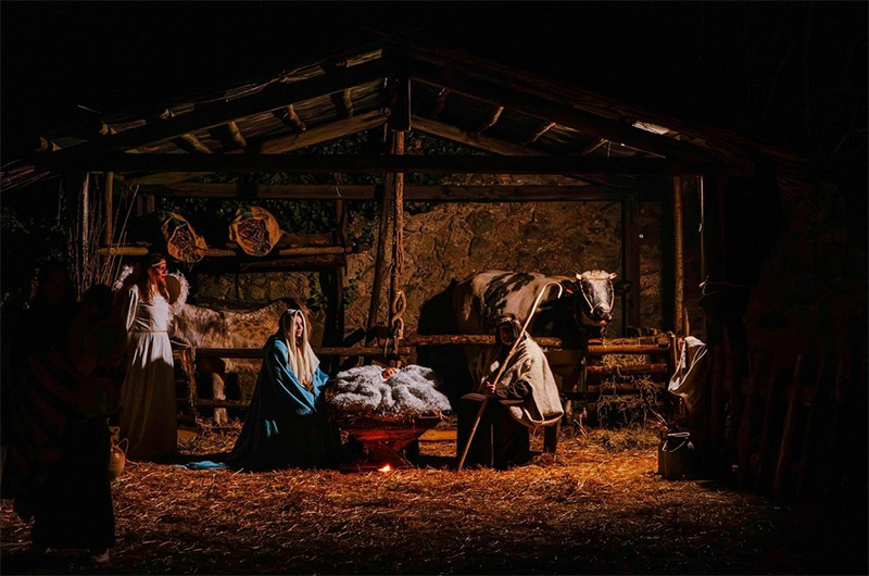 Accanto alla scena della Natività prenderanno vita numerose scene storiche, con figuranti in abiti d’epoca intenti nelle attività quotidiane di un tempo. In alcune di queste scene sarà possibile assaggiare i cibi della tradizione, come il polentaro, le castagne e i marroni e i formaggi del formaggiaio, presentati come parte integrante della rappresentazione per far rivivere ai visitatori i sapori e le tradizioni del passato.