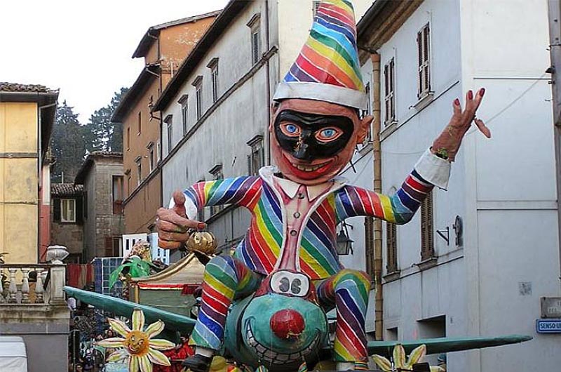 Un carnevale storico, quello che si svolge ogni anno nel comune di Acquapendente. Un evento antico che in passato era uno dei riti agrari d’inizio stagione ed aveva lo scopo di espellere il male, il buio dell’inverno e propiziare la fecondità della terra. Un rito basato sul principio del capro espiatorio attraverso il quale gli influssi malefici venivano sconfitti. Il Carnevale è quindi un periodo di trasgressione e scherzi e dal 1923 ad Acquapendente si hanno le prime testimonianze sull’utilizzo della cartapesta per la realizzazione dei carri allegorici; carri che col passare del tempo sono divenuti sempre più belli e colorati. Il rintocco della vecchia campana della torre dell’Orologione dava il via al Carnevale Aquesiano con maschere e carri allegorici che sfilavano, ieri come oggi, per le strette vie del centro storico, in un clima di euforia e divertimento per grandi e piccoli.