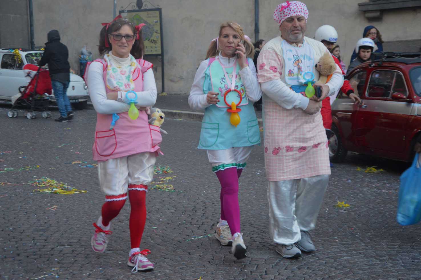 Alla città è stato restituito il proprio carnevale. Migliaia di persone hanno riempito tutto il percorso designato del centro di Viterbo, in un un sabato pomeriggio  in cui pure il bel tempo ha fatto al differenza. ” Ringrazio tutti i presenti, questa è una manifestazione spontanea, fatta dalle gente, per la gente”. Così ha parlato Lucio Matteucci il capofila dell’appena nato Comitato Carnevale Viterbese. Nato per scherzo appena tre mesi fa , ma si sa che lo scherzo funziona soprattutto a carnevale! Un corteo di oltre 400 partecipanti in maschera, partito dal Sacrario nel primo pomeriggio, proseguito per via Marconi,corso Italia, piazza delle Erbe, via Saffi,la chiusura  a piazza del Comune. “Il Comune ha avuto fiducia in questo gruppo, ha dichiarato la consigliera Daniela Bizzarri, e oggi proprio a tutti i componenti va il nostro grazie per l’ottima riuscita della manifestazione”. Alla nuova amministrazione che verrà spetterà il compito di dare all’evento continuità e crescita. Intanto oggi ci siamo goduti la festa. Con i gruppi mascherati gli sbandieratori della città di Viterbo e del Pilastro, il complesso bandistico Ottavio Pistella di Vetralla, le associazioni Ferentum di Grotte Santo Stefano e accademia della Croce scarlatta. Tutti rigorosamente in maschera. Poii Figuranti del carnevale di Vitorchiano, previsto per domani, e il gruppo Harley Davidson e l’associazione 500 Tuscia club.In piazza del Comune a fine sfilata, in una piazza piena Mammo Rappo con Daniele Ceccarini e i due Ddj Alberto Dedo Ancorwa e Kevin Bartolomei.