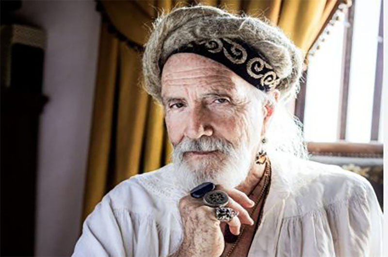 Prima di diventare un granfluecer sui social, Stash Klossowski de Rola noto come Prince Stash è stato un musicista, era il batterista della supporting band di Vince Taylor, un modello per Playboy e per Gucci ( interpretava il padre di Harry Styles nella campagna Mémoire d’une Odeur campaign del 2019). Adesso, all’età di 83 anni, barba lunga, capelli pettinati in speciali dreadlock che gli cingono il capo e raffinati abiti dal gusto orientale, ama raccontare su Instagram e Tiktok, gli oggetti che sono i ricordi della sua romanzesca vita, attraverso la sua vastissima collezione di libri e mobili d’epoca ed insieme a me la storia del suo castello.