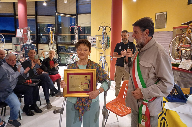 Il Comune di Montefiascone dona alla moglie del ciclista Sante Ranucci una targa in suo ricordo