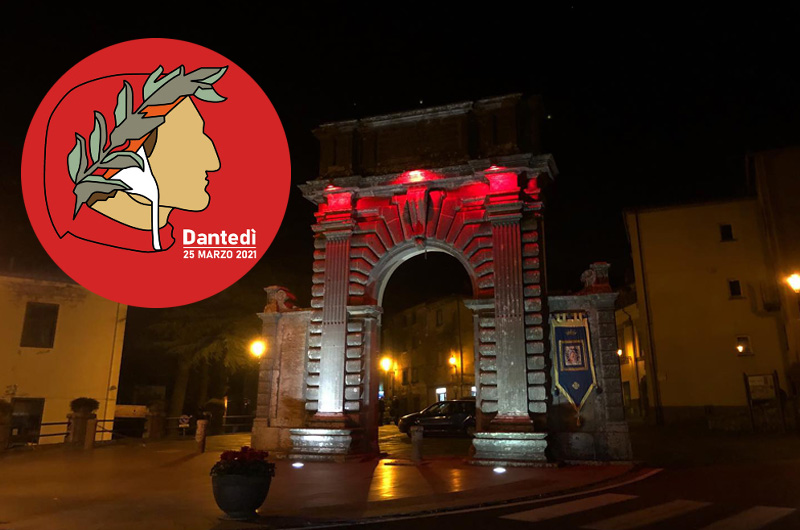 Luci sulla Porta Albana di Bagnoregio e sull’auditorium Taborra. Il 24 marzo, alle 19, in diretta Facebook, la città si accende per Dante Alighieri. È così che Bagnoregio dà il via a “Dantedì”, la giornata dedicata al Sommo poeta che quest’anno acquista ancora più prestigio, visto che ne ricorrono i settecento anni dalla morte. Settecento anni e non sentirli, con l’uscita dall’Inferno “a riveder le stelle” eretta a metafora di un mondo che spera nella fine della pandemia.