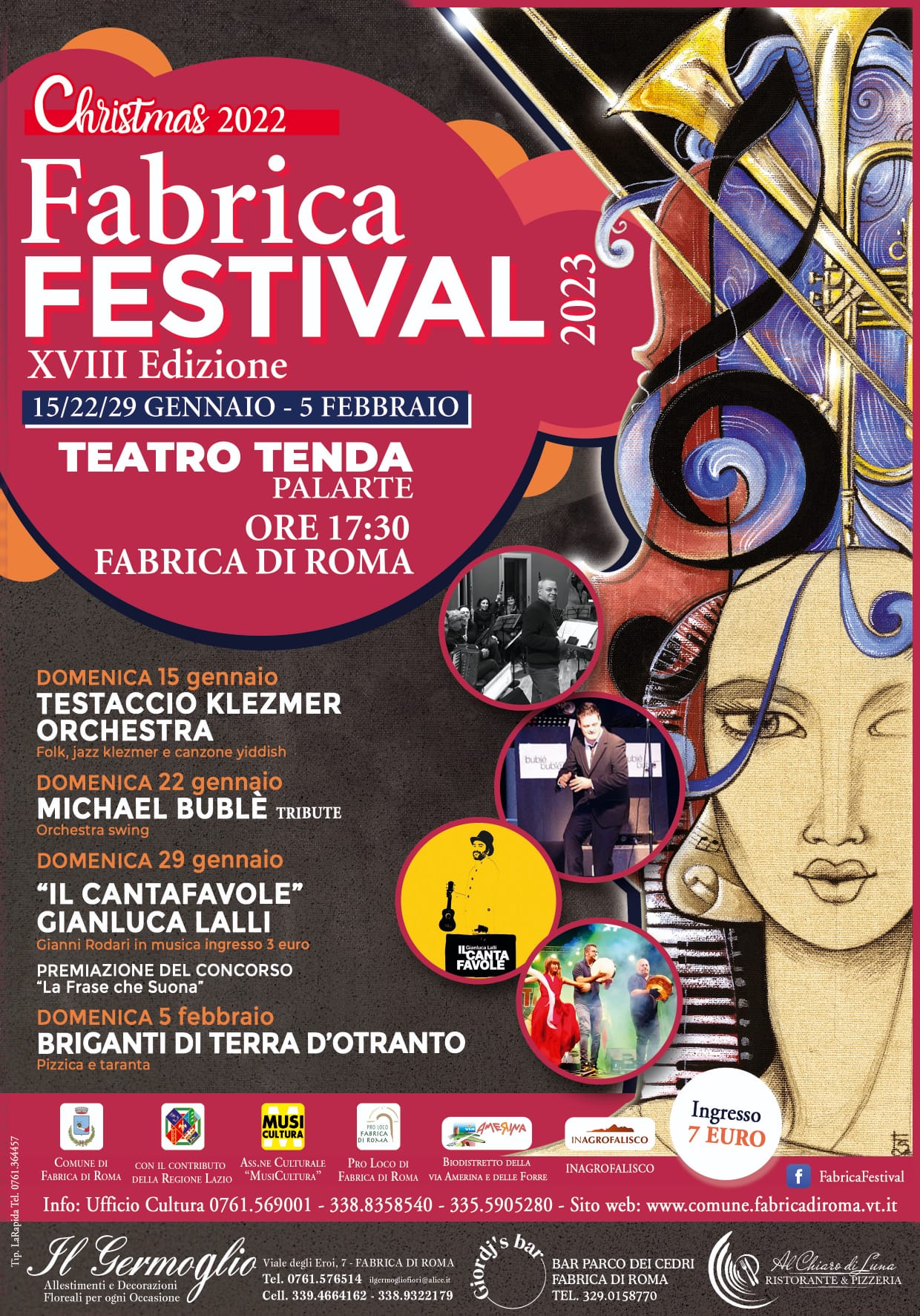 Prosegue domenica 22 gennaio a Fabrica di Roma la XVIII edizione del Fabrica Festival che si svolgerà presso il Teatro Tenda PalArte con inizio alle ore 17.30.
