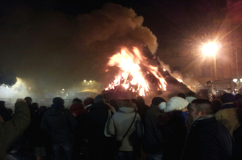 L’accensione è avvenuta come al solito alle ore 18.30 nella superaffollata piazza XX Settembre a Bagnaia dove il grande falò impera in quella che ormai è ritenuta la festa fatta dai giovani per i giovani. La montagna di fuoco brucia e illumina ad onore di Sant’Antonio di cui il 17 gennaio ricade la festività, sentita un pò ovunque nei borghi della Tuscia. La piramide di legna i messa in piedi dai ragazzi del Comitato del Sacro Fuoco Sant’Antonio , che ci hanno lavorato da mesi per mettere in scena lo spettacolo che ogni il 16 gennaio si rivela come una delle manifestazioni più suggestive del viterbese. Poi tanta musica, spettacoli circensi,enogastronimia e allegria. Non solo i bagnaioli più anziani, ma si sono visti tanti giovani accorsi a scaldarsi con un enorme falò alto sei metri, il cui fuoco ha i illuminato a giorno l’intera piazza.www.sacrofuocosantantonio.it