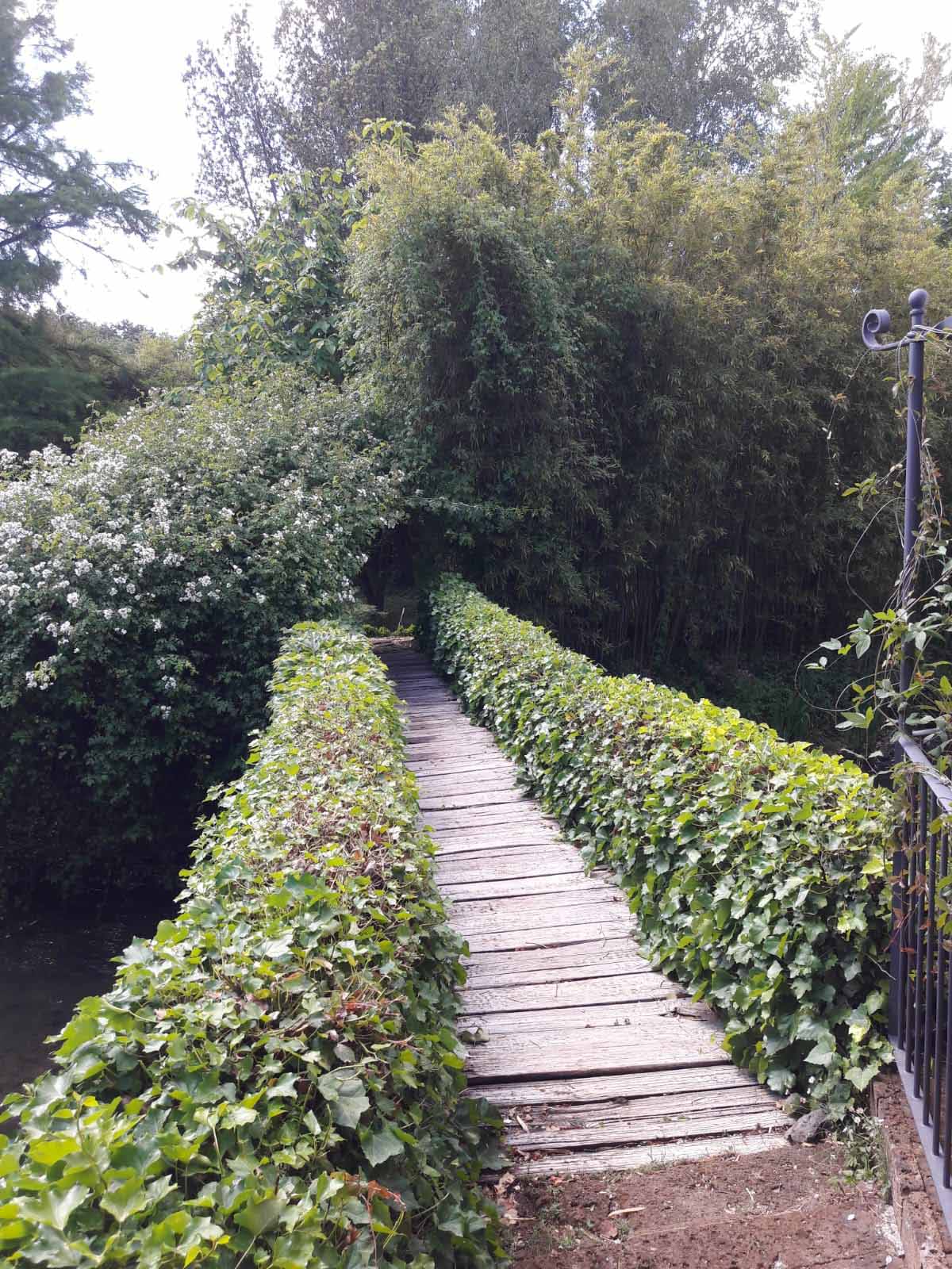 Accanto al fiume ed attorno ad un piccolo lago, alberi, arbusti, bambù, prati e fiori. Rose, peonie, iris, violette, papaveri e calle. Una regia di assieme discreta ma continua con disegni più romantici che geometrici.