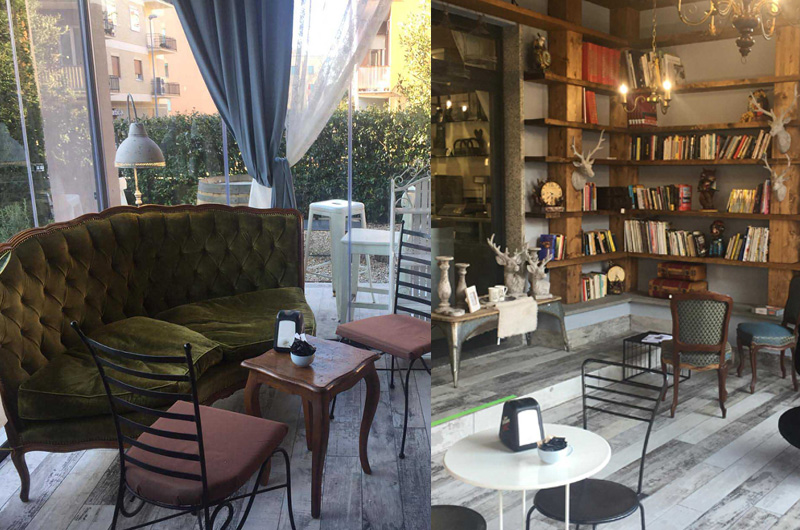 L’ambiente già denota  la cura per i dettagli, l’amore per una professione che nasce cinquanta anni or sono dal capostipite Mario, ed è oggi al secondo passaggio generazionale con Katia e Virginio, quest’ultimo rinomato Maestro pasticciere, mentre la declinazione per l’arte e la letteratura è di Katia. E’ sua l’idea del Giardino d’Inverno con lo spazio dedicato alla lettura. Risponde a una nuova esigenza di servizio sollecitata da questa pandemia per creare punti d’incontro dove si discute e si possono scambiare libri. Dove magari autori inediti locali possono presentare il proprio, al momento nel pieno rispetto delle normative Covid-19, ma è un allenamento per trovarsi pronti quando il vaccino ci avrà resi liberi di ritornare pienamente alla nostra vita, alle nostre abitudini.