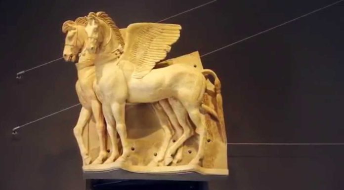 Era la prima settimana del mese di settembre del 1938, quando l’archeologo Pietro Romanelli durante gli scavi al maestoso basamento del Santuario dell’Ara della regina, posto su una delle alture su cui si ergeva splendida l’antica città etrusca di Tarquinia, rinvenne in circa cento frammenti, siti ad una profondità media di 2,70 metri, quella che, dopo una minuziosa opera di restauro condotta dal restauratore A. Falessi, diventerà la massima espressione della coroplastica etrusca: il gruppo fittile dei Cavalli alati.