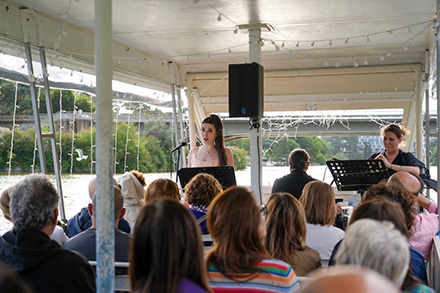 Martedì 30 settembre l’esperienza prosegue con The Wood di Bernardo Lo Sterzo, un omaggio al Sogno d’una notte di mezza estate di Benjamin Britten: un’ode al bosco come spazio iniziatico e mutevole, tra suoni fluttuanti e presenze evanescenti. Sul battello, la voce calda del mezzosoprano Simona Ruisi – interprete e violista romana già premiata in diversi concorsi internazionali – dialogherà con la chitarra classica di Riccardo Rettaroli, giovane concertista attivo in ambito solistico e performativo.