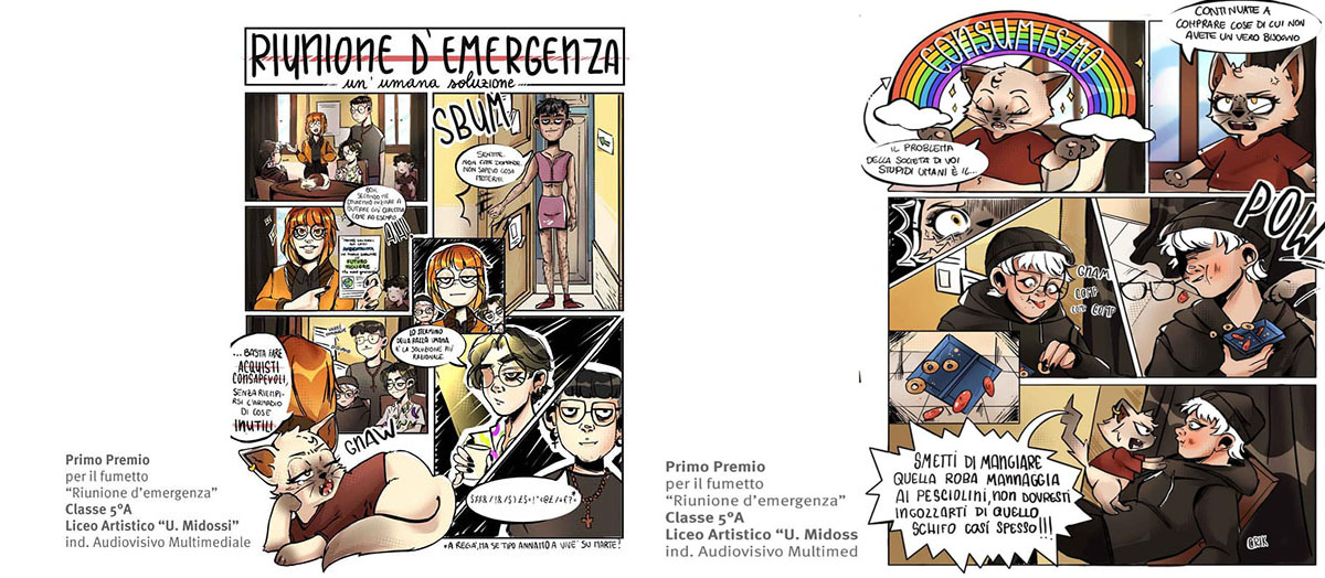 Gli studenti di tutte le Scuole Secondarie Superiori del Lazio sono stati invitati a immaginare e a raccontare ipotesi e soluzioni di cambiamento in positivo del mondo con un fumetto: gli studenti del Midossi, seguiti dalle docenti Brancaforte e Fornari dell’Indirizzo Audiovisivo Multimediale, hanno portato a casa uno splendido risultato.
