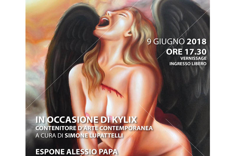 Una mostra collettiva nella quale trovano spazio quadri come “L’Angelo Decaduto” che, come spiega lo stesso Papa: “Simboleggia, si ispira alla caduta di Satana, a Michele Arcangelo, la caduta degli Angeli Ribelli. Però, la chiave di lettura è la decadenza della donna in questi anni. Usando il discorso della prostituzione, della violenza e dello sfruttamento sulle donne, ho usato questa doppia chiave, ispirandomi ad una tematica religiosa, però riprendendo una tematica attuale. L’obiettivo è ridare valore alla figura femminile, ferita nell’anima. Quello squarcio nel petto che vediamo è lo squarcio dell’anima. Una decadenza dunque dovuta all’essere umano, all’uomo che ha fatto decadere il valore della donna, un valore importante perché dalla donna nasce tutto, è la nascita di qualunque cosa. E’ un messaggio anche contro la violenza e sulla decadenza della società”.