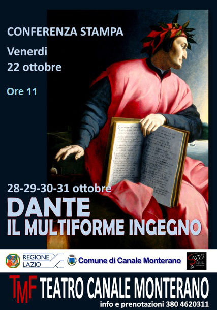 Quattro giorni dedicati a Dante Alighieri nel settecentesimo anniversario della sua morte. L’iniziativa è “Dante… il multiforme ingegno”, una manifestazione che, ideata e realizzata dall’associazione culturale “Il Salto” e organizzata col patrocinio del Comune di Canale Monterano e della Regione Lazio, sarà presentata alla stampa venerdì 22 ottobre alle 11.00 nel teatro comunale di Canale Monterano (via della Scuola Materna, 6). Saranno presenti, fra gli altri, il sindaco Alessandro Bettarelli e gli organizzatori del progetto.