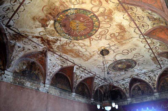 La decorazione pittorica del castello, e i simboli collegati alla vita di Giulia, affrontati per la prima volta in maniera scientifica nel volume di Giuseppe Capriotti del 2020, sono stati ora studiati da Daniela Gallavotti Cavallero. Da una nuova interpretazione di alcuni stemmi, il periodo di esecuzione degli affreschi risulta anticipato rispetto alla datazione post 1519 già proposta da Capriotti.