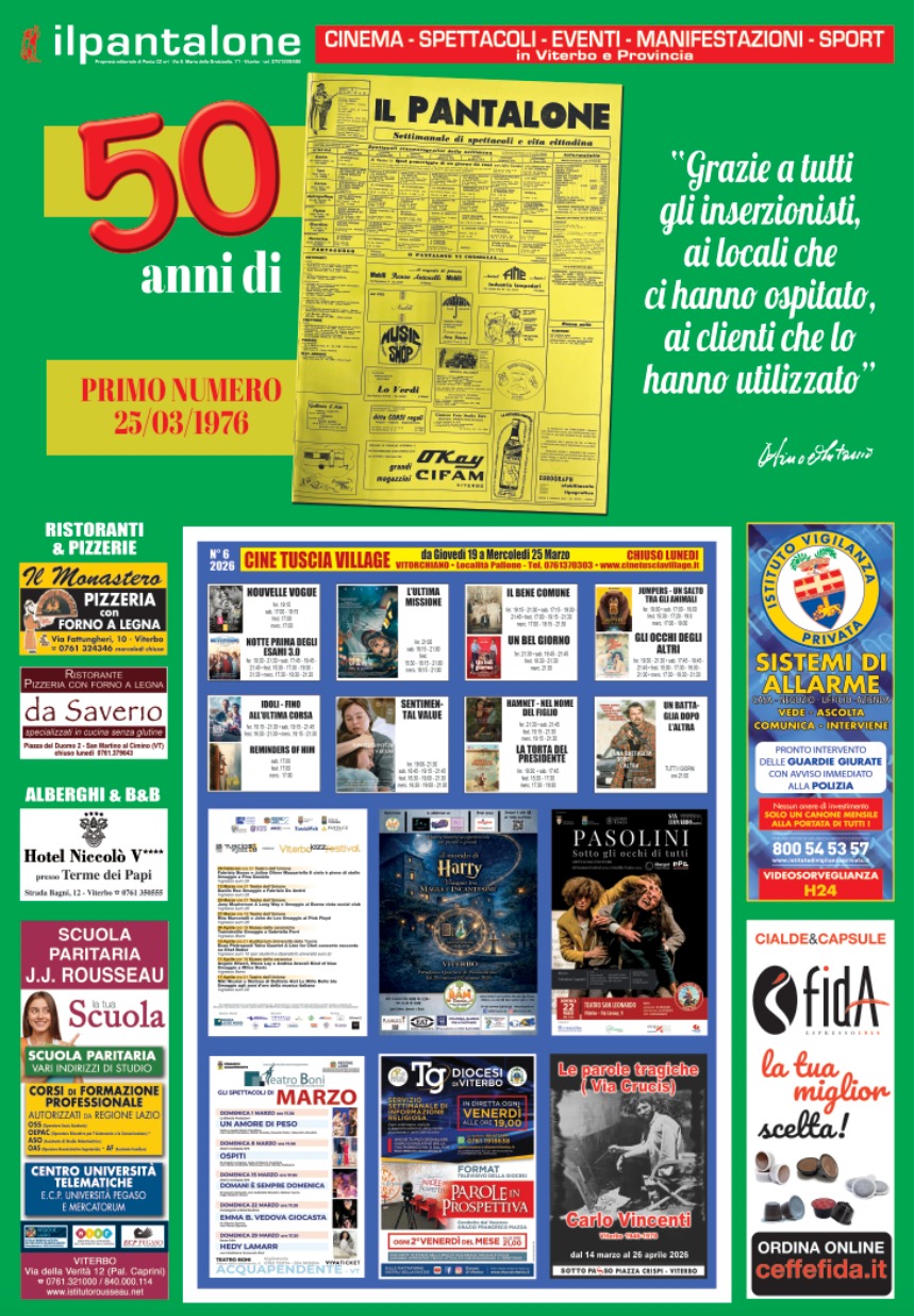 25 marzo 1976 e 25 marzo 2026 due date legate alla nascita di quello che potrebbe esser chiamato un telefono cartaceo. Stiamo parlando del “Pantalone” che a Viterbo compie 50 anni. Ideato da Antonio Obino (nella foto) che pur avendo un posto statale a Trieste, finita la leva, decise di diventare uno dei più famosi imprenditori viterbesi grazie al “Pantalone”, settimanale di spettacoli e vita cittadina.